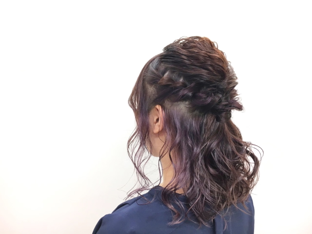 インナーカラーのパープルが編み込まれて